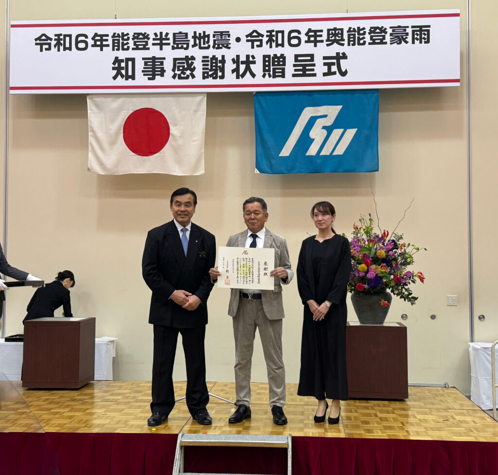 石川県知事より感謝状を受領